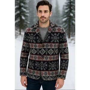 Levi’s Men’s Sweater Jacket Medium Nordic Fair Isle Snowflake Knit Blazer. Excellent Preowned Condition.