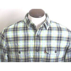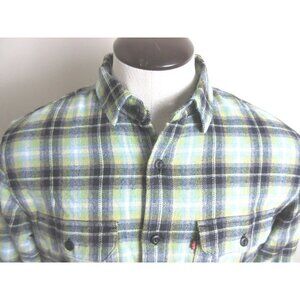 Levi's Men's The Worker Relaxed button up Plaid Shirt Green Blue Black Plaid