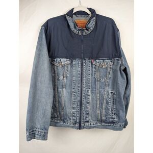 Levis Mens Trucker Jacket Mixed Denim Nylon Full Zip Jacket L Western Workwear