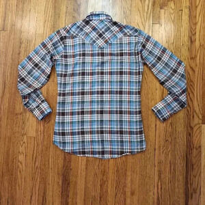 Levis Mens Vintage Pearl Snap Button Down Shirt Size S 70s 80s Plaid