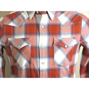 Levi's Men's Western Snap Front Plaid Red White Blue Cotton Shirt Classic NWT
