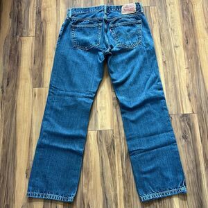 Levi's jeans featuring a distinctive leather patch. Iconic design with quality craftsmanship.