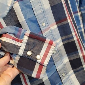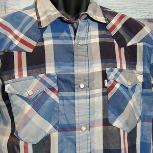 Levi's Men's Blue Red Plaid Pearl Snap Western Shirt Sz Small S