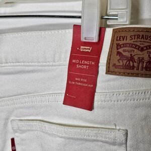 Levis Mid Length Womens White Denim Shorts Size 34 5-Pocket Casual Style