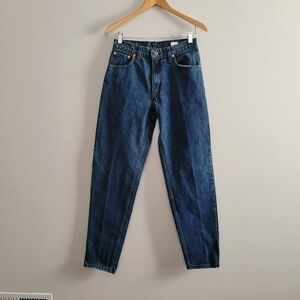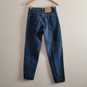 levis mid rise tapered jeans. excellent condition! dark wash.