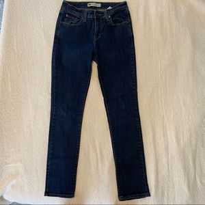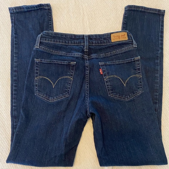 Levi’s Mid Rise Skinny dark wash jeans 99% cotton 1% elastane Excellent condition with no signs of wear Size 4 M W 27 L 32 Rise 9”