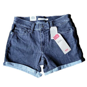 Levi's Mid-Length Sculpt slim through hip washed out cuffed black denim shorts