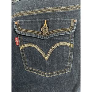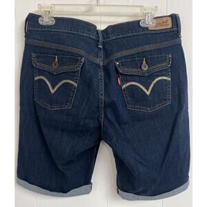 Levi's Mid-Rise Jean Shorts Dark Blue Cuffed Women's Size 6 Gold Pocket W 28