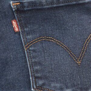 Elevate your wardrobe with these stylish Levi's Mid-Rise Skinny Blue Jeans. Made of a blend of Polyester and Cotton Denim, these jeans are perfect for all seasons and feature a solid pattern with a dark wash. The 5-Pocket Design includes a button and zipper accent with the Levi's logo. These jeans have a regular fit and a mid-rise of 8.5-10.5 inches, making them a great choice for plus-sized women. The inseam measures 30 inches, and the jeans are machine washable for easy care. Perfect for any occasion, these Levi's jeans are a must-have addition to any fashion-forward woman's closet. Great jeans with classic stylings. Measurements are waist 17, hips 20, and inseam 30. Jeans were measured laying flat and unstretched.