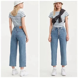 Levis Mile High Cropped Wide Leg Blue Button Fly Jeans Size 28