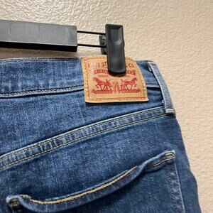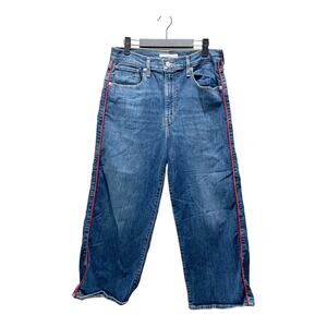 Levi's Mile High Cropped Wide Leg Denim Jeans Size 30 Dark Wash Red Stripe