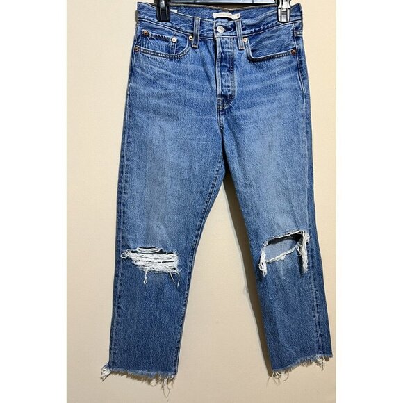 Levi's Women's Wedgie Straight Distressed Frayed Raw Hem Button Fly Jeans Sz 27.