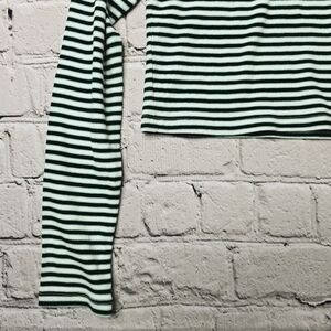 Levis Moon Rib Cropped Striped Black White Electric Green Turtleneck Top NWT Med