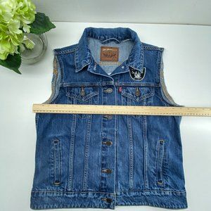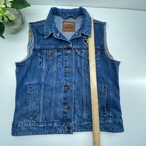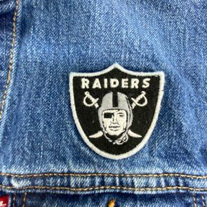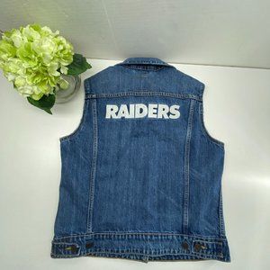 Levi's NFL denim jacket - Oakland Raiders Women Vest Size L. Snap button closure, Team Logo patch at top left. Two flap chest pockets and side pockets.