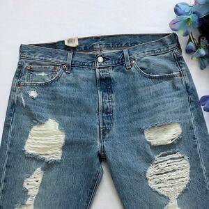 Levi's NWOT 501 Light Wash Distressed Straight Jeans Men 36 x 32