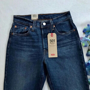 NWT. 501 Original High Rise Straight Leg Jeans for Women Various. Buttons for closure, 5 pockets design, medium wash, has loops, "whiskering" effect. Pictures are part of description.