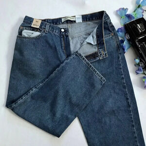 NWT 550 Medium Wash Relaxed Fit Jeans for Men Size 38 x 29. Zipper and button for closure, 5 pockets design, has loops. Please note, there is material imperfection front left side by knee area. Pictures are part of description.