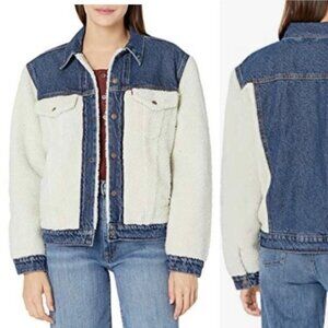 Levi’s NWT Ex-Boyfriend Trucker Pierced Sherpa Denim Jean Jacket M new