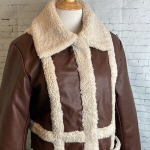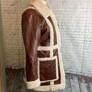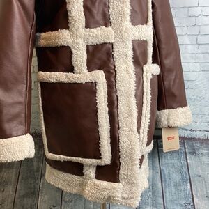 Levi's NWT Vegan Leather Sherpa Spill Out Coat SZ S Boho Hippie Penny Lane 70’s