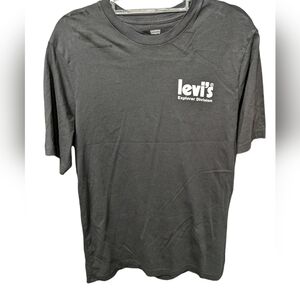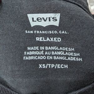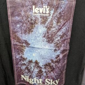 Levi's Night Sky Tee. Graphic screened on left chest. Large graphic on back. Woven label on side seam. Ribbed crew neckline. Short sleeves. Relaxed fit. 100% Cotton. Machine wash. Imported.