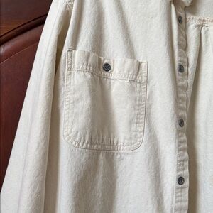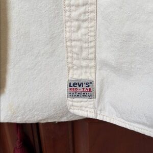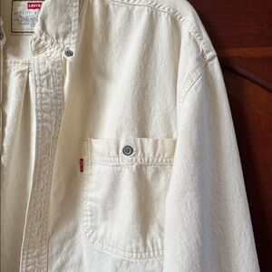 Levi's off-white shirt with button closure. Features dual chest pockets. A few marks on sleeve and back. See pictures.