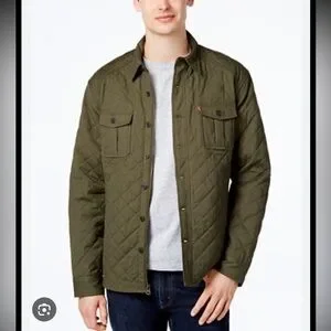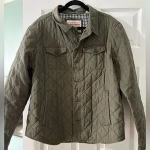 Levi’s Olive Green Quilted Trucker Jacket Gingham Lining Size XL New