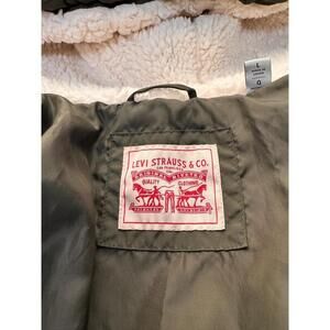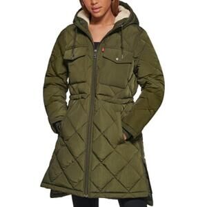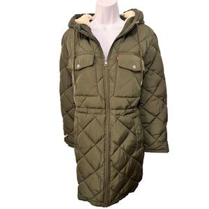 Levi's Olive Quilted Hooded Fleece Lining Parka Coat Large