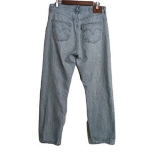 Levi's Original Fit 501 Men's Jeans in size 31x32, light wash and straight leg design with Levi's logo accents and a 5-pocket buttonfly.. With a mid-rise fit and a timeless solid blue color, these jeans are versatile for all seasons and are part of Levi's 501 series. Nice fading.