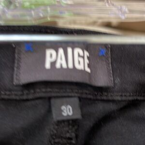 Timeless black trousers by PAIGE. Versatile and stylish. one knee frayed bottom, slim style, two buttons, soft fabric. Great slim fit. Sensational fit & soft denim.