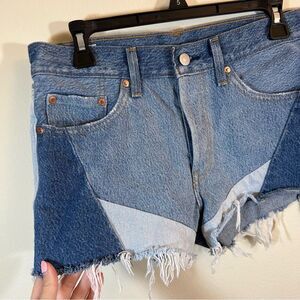 Levi’s women’s 501 patchwork altered shorts. Button fly.
