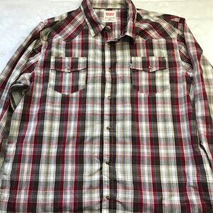 Levi's Pearl Snap Button Down Shirt Men's XXL Plaid Long Sleeves Cotton Blend