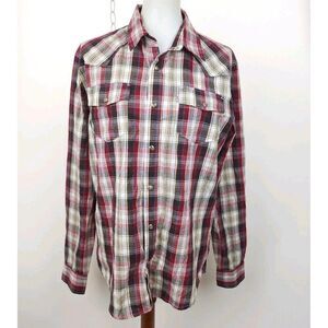 Levi’s Pearl Snap Shirt Button Down Collar Shirt Red Plaid Western Cowboy Mens M
