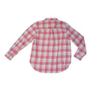 This vintage Levi's shirt in size Large comes in a charming pink and white plaid color that complements any style. The cotton material ensures durability and quality, making it a must-have for any wardrobe. Experience the perfect combination of comfort and style with this Levi's shirt.