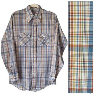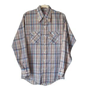 1379 70s Vintage Levi's Plaid Button Up Men's Small VTG Western Long Shirt Horn Made in USA Sawtooth Rodeo Cowboy