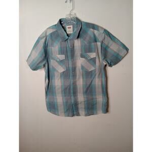 Levi's Plaid Large Short Sleeve Blue Pearlsnap Western Rodeo Shirt