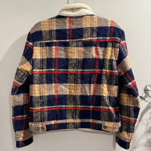 Levi’s Plaid Tweed Wool Blend Trucker Jacket Sherpa Snap Buttons Size Small EUC