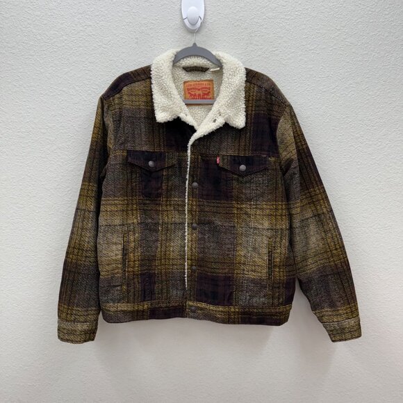 Levis Plaid Type III Sherpa Lined Trucker Snap Button Jacket Mens size Large