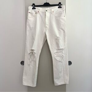 Levi's Premium 501 Big E Tab Cropped Distressed Jeans - High Rise Straight Leg
