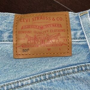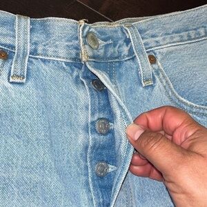 Classic Levi's 501 jeans cut off short shorts. Big E pocket tab. Concealed rivets. Terrific fade. Excellent condition. Waist 30" Hips to around 39-40"