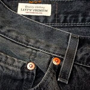 Levi's Premium 501 Button Fly Distressed Black Denim Jeans