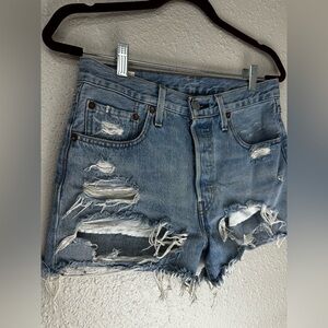 Levi's Premium 501 Button Fly W26 Light Blue Women Jean Shorts Frayed Distressed