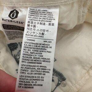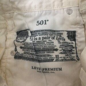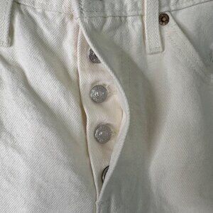 Levis Premium 501 Button Fly White Distressed Denim Cotton Shorts W24