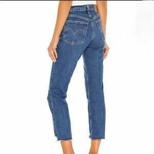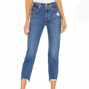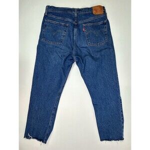 Levi's Premium 501 Cropped Straight Jeans Charleston Fun Blue Denim Raw Hem s 31