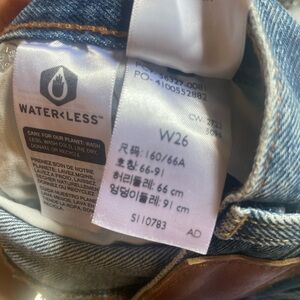 Distressed with a raw frayed hem for that relaxed, effortless quiet-luxury summer vibe. Water<Less™ denim, button fly, and classic 501 fit.