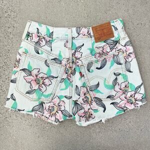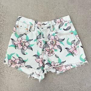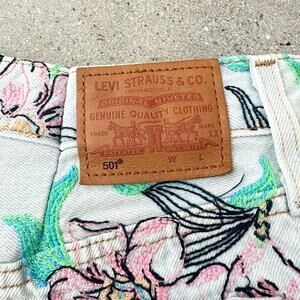 Levi's Premium 501 High Rise Hella Bloom Embroidered Floral Denim Shorts