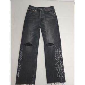 Levis Premium 501 Jean Sz 25 High Rise Embellished Fray Button Fly Big E Gray