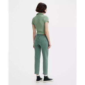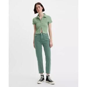 LEVIS PREMIUM 501 Original Green Misty Silver Pine Cropped Jeans are a stylish twist on the iconic 501 design. Featuring a unique green "Misty Silver Pine" wash, these jeans offer a fresh, modern look with the classic button-fly closure and straight-leg silhouette. The cropped length (W31 L26) adds a contemporary edge, making them perfect for pairing with boots or sneakers. These jeans maintain the timeless durability and comfort of Levi's, while the distinctive color gives them a versatile, fashion-forward appeal for casual wear.