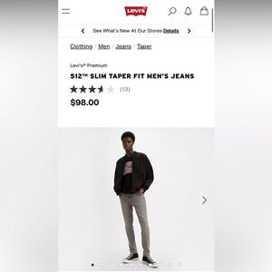Levi's® Premium 512™ SLIM TAPER FIT MEN'S JEANS | Size 42x36 | NEW!!!🖤👖