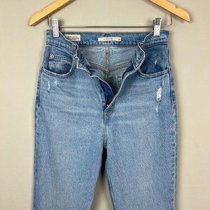 Levi's Premium 70's High Flare Jeans Womens 26 Blue Light Wash Distressed Denim