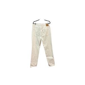 The Levi's Premium 70s High Slim Straight Jeans in white are designed for women with a slim fit, featuring a stylish straight leg silhouette. These jeans are a size 33 with a regular size type, making them a fashionable and flattering choice for any wardrobe. With the slimming features and iconic Levi's brand, these jeans offer both style and comfort for a trendy look.